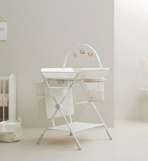 첫째 때는 유행하던 이케아 원목 갈이대를 썼는데, 묵직하고 이동도 불편했어요. 그래서 둘째부터는 소베맘 기저귀 갈이대로 바꿨습니다. 원터치로 접고 펼 수 있고, 공간도 많이 차지하지 않아서 훨씬 실용적이었어요.