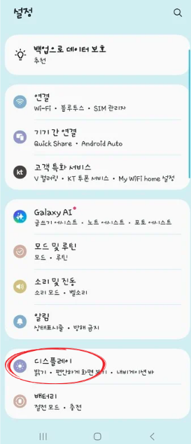 → 휴대폰에서 ‘설정’ 아이콘을 눌러주세요. - 디스플레이 선택