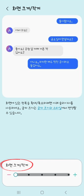 (여기서 글씨 크기를 막대[슬라이더]로 조절할 수 있어요.)
